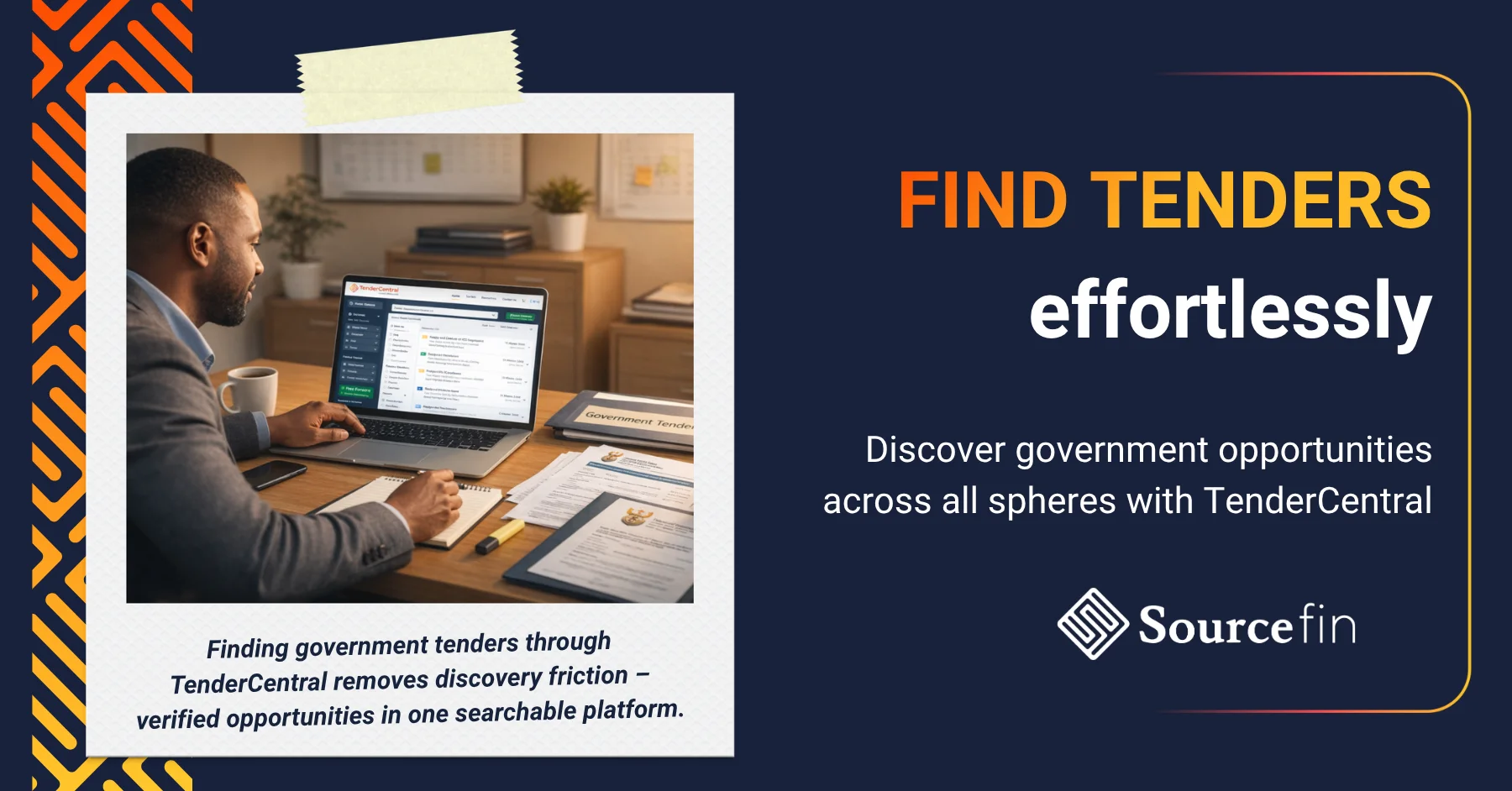 TenderCentral was launched by Sourcefin in December 2025 to address the fragmented tender discovery problem. The platform aggregates verified tender opportunities from national, provincial, and municipal entities into one searchable interface. Instead of checking dozens of different websites, you search one platform that consolidates opportunities from all government spheres.