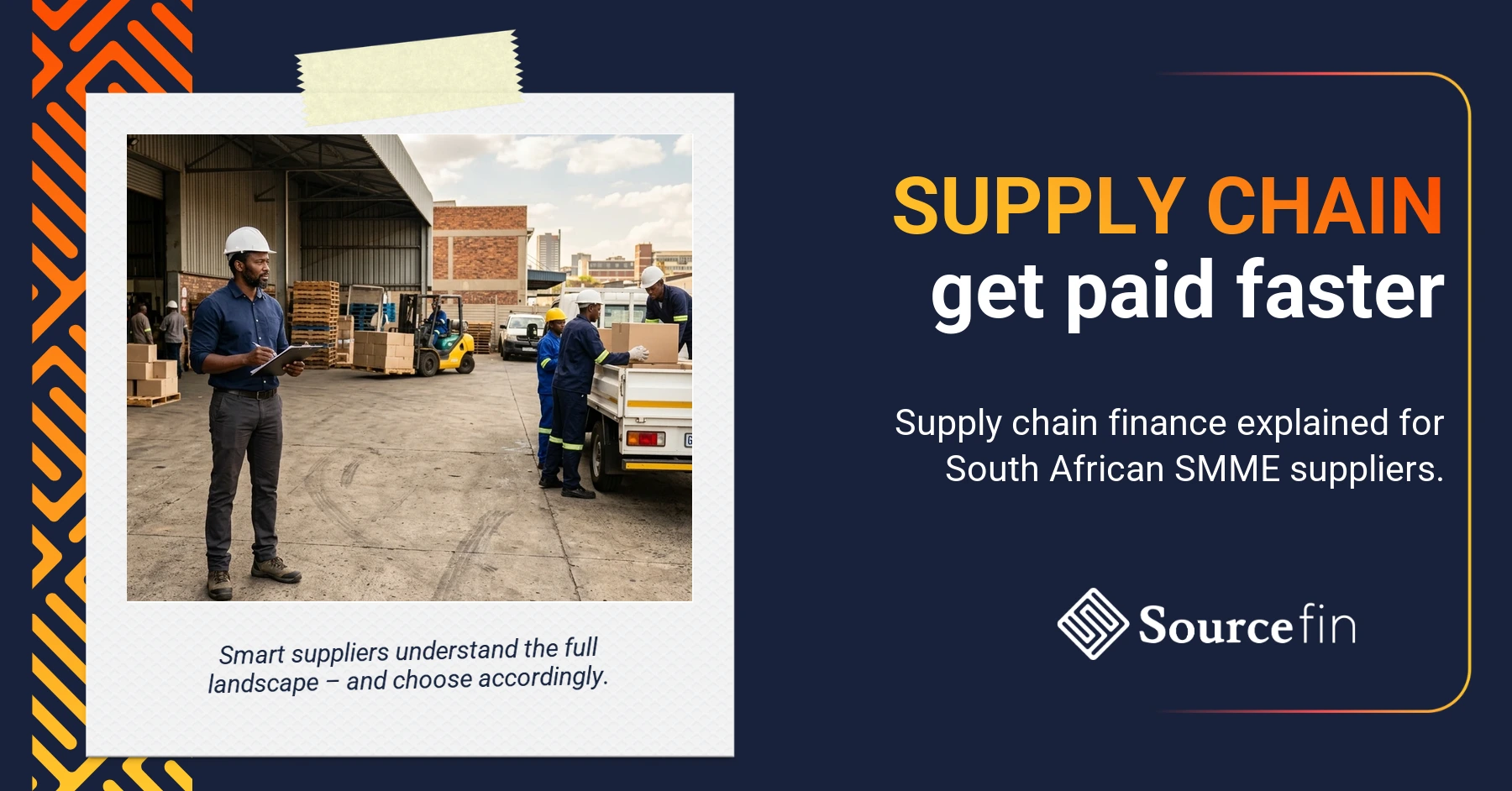 Invoice discounting is your closest alternative. It solves the same problem — getting paid faster on outstanding invoices — without requiring your buyer to participate. If you need cash before delivery to fulfil a confirmed order, purchase order funding is worth considering. Both options are available through Sourcefin for qualifying South African SMMEs.